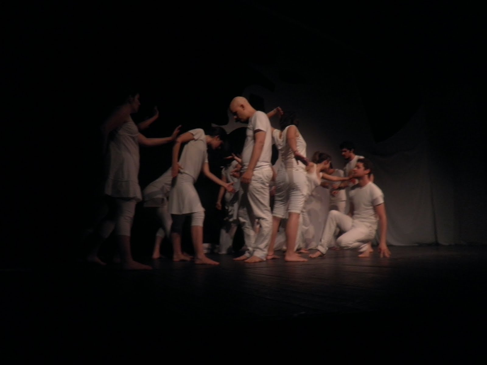 Η παράσταση ξεκίνησε με 40 λεπτά καθυστέρηση, αρκετά εκνευριστικό όταν στέκεσαι σε ένα στενό πεζοδρόμιο με τον ένα πάνω στον άλλον. Μπαίνοντας στον προθάλαμο του θεάτρου υπήρχε φωτοτυπία σε άσπρο/μαύρο με αισθητική ανάλογη της παράστασης, τοποθετημένη σε ευκρινές σημείο να την πάρουν οι θεατές, με το προαναφερθέν απόσπασμα, προκειμένου να μπουν στο πνεύμα του κειμένου. Πιο δίπλα υπήρχε τραπεζάκι με το πρόγραμμα της παράστασης έναντι συμβολικού αντιτίμου, το οποίο περιείχε τα κείμενα του έργου για όσους τα αναζητούσαν. Μετά την σύντομη εισαγωγή του σκηνοθέτη, η μουσικός του έργου με το κόκκινο φουστάνι μπήκε και χορεύοντας μάζεψε όχι μόνο τα μαύρα πανιά του σκηνικού αλλά και την σαΐτα/έκπληξη που είχαν πετάξει θεατές που είχαν βαρεθεί με την αναμονή. Και άρχισαν να βγαίνουν οι ηθοποιοί και να εξελίσσεται η ιστορία. Αισθητικά ήταν η πλέον ολοκληρωμένη παρουσίαση στο φοιτητικό φεστιβάλ θεάτρου μέχρι τη στιγμή που γράφονται αυτές οι γραμμές. Είχε κίνηση, χορό, ρυθμό, γρήγορη εναλλαγή λόγου, μουσικής, χορού αλλά θα μπορούσα το ίδιο ευχάριστα να κόψω τον ήχο του κειμένου και της μουσικής και να το αφήσω βουβό ή να του βάλω κάποια άλλη μουσική. Η εικόνα υπερτερούσε του λόγου στα περισσότερα σημεία. Γεγονός απόλυτα λογικό καθώς ενώ τις εικόνες έστηνε το ίδιο άτομο, τα κείμενα τα έγραψαν πολλά και διαφορετικά άτομα με διαφορετικές δυνατότητες και δυναμικές στον τρόπο γραφής. (Αν και δεν γνωρίζω αν ο σκηνοθέτης επέλεξε τα κείμενα που μπήκαν τελικά στην παράσταση ή όλη η ομάδα).